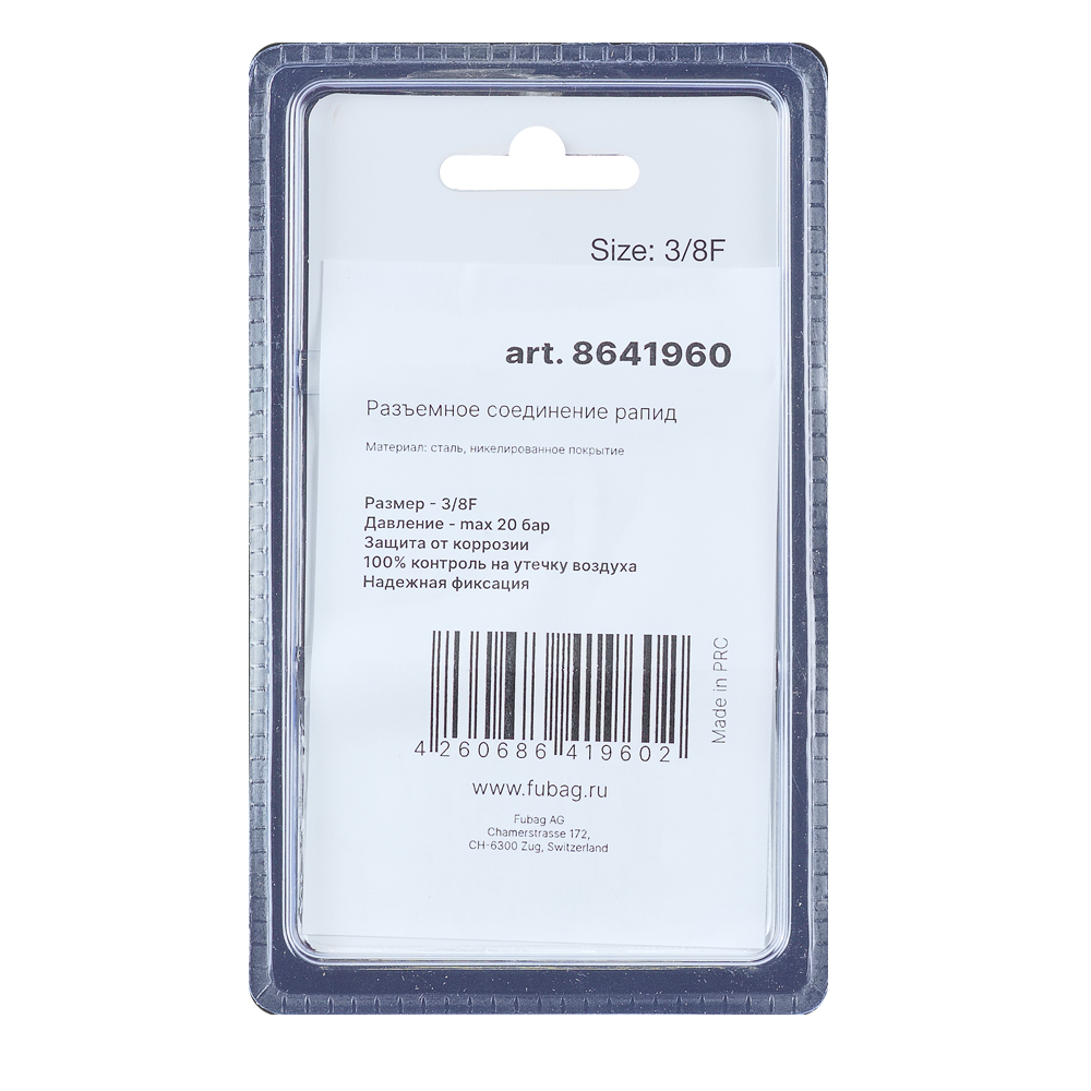 Отзывы о FUBAG Разъемное соединение рапид (муфта), 3/8 дюйма F, внутр. резьба, блистер 1 шт